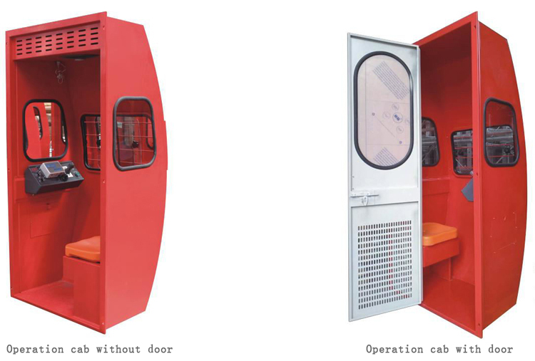 Cage with perforated aluminium and operation cab.
